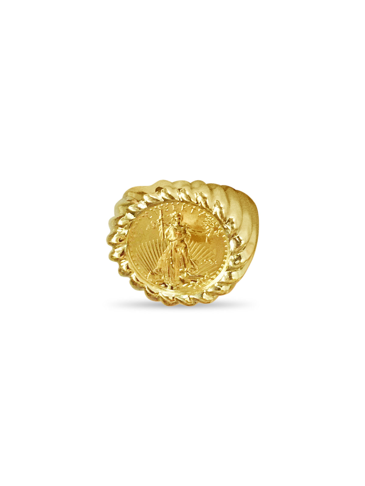 Fancy Solid Gold Handmade Coin Ring , 1/10oz Coin ,