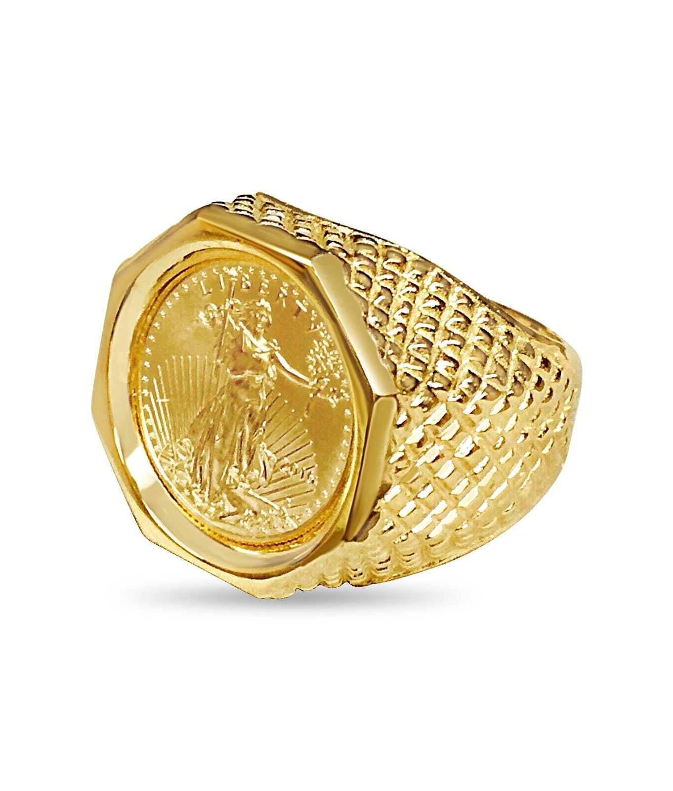 Fancy Solid Gold Handmade Coin Ring , 1/10oz Coin ,
