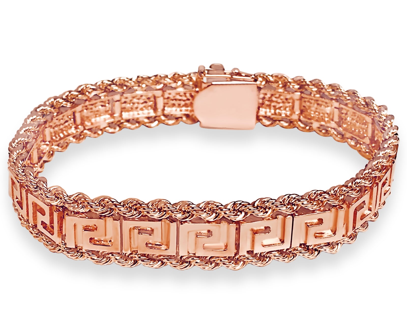 Title: Rope & Greek Key Solid White/Yellow/Rose Gold Handmade Bracelet, 12mm, 6.5-10 Inch