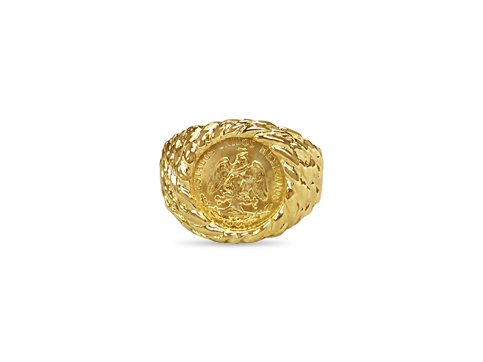 Nugget Solid Gold Handmade Coin Ring , Dos Pesos Coin ,