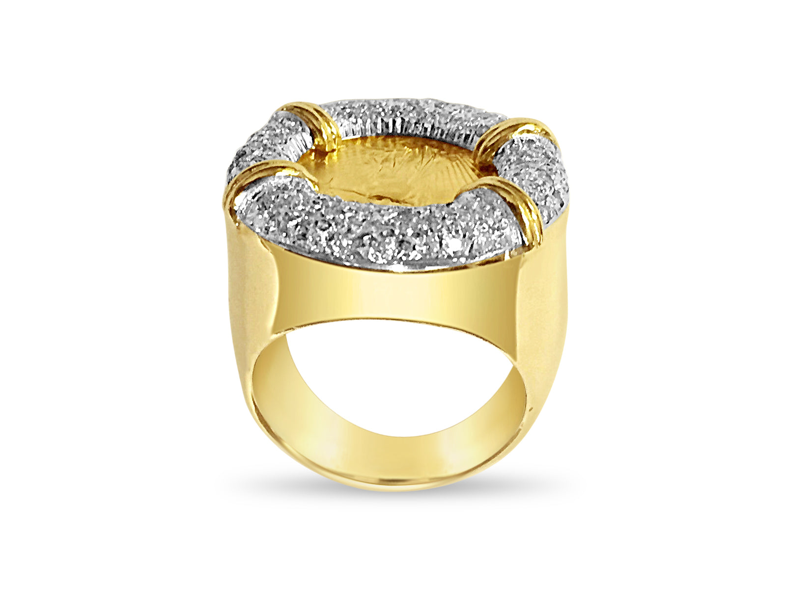 Title: Diamond Fancy Solid White/Yellow/Rose Gold Handmade Coin Ring,