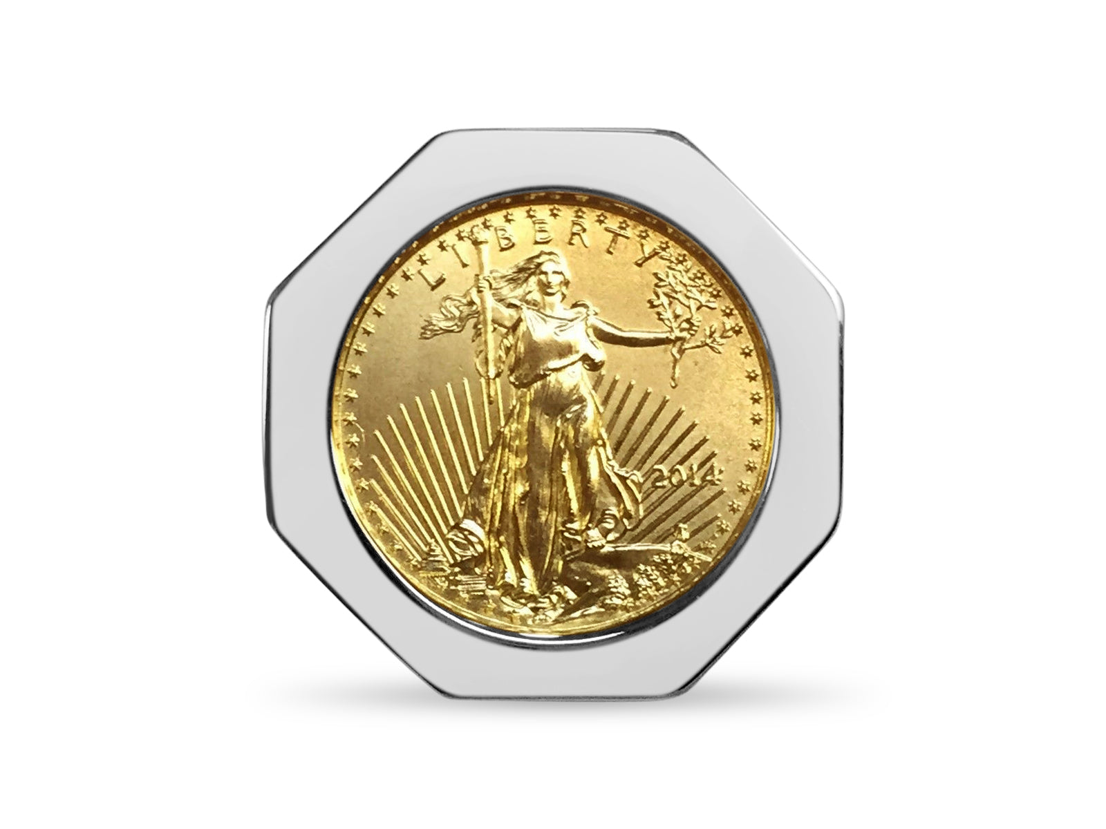 Fancy Solid Gold Handmade Coin Ring , 1/10oz Coin ,