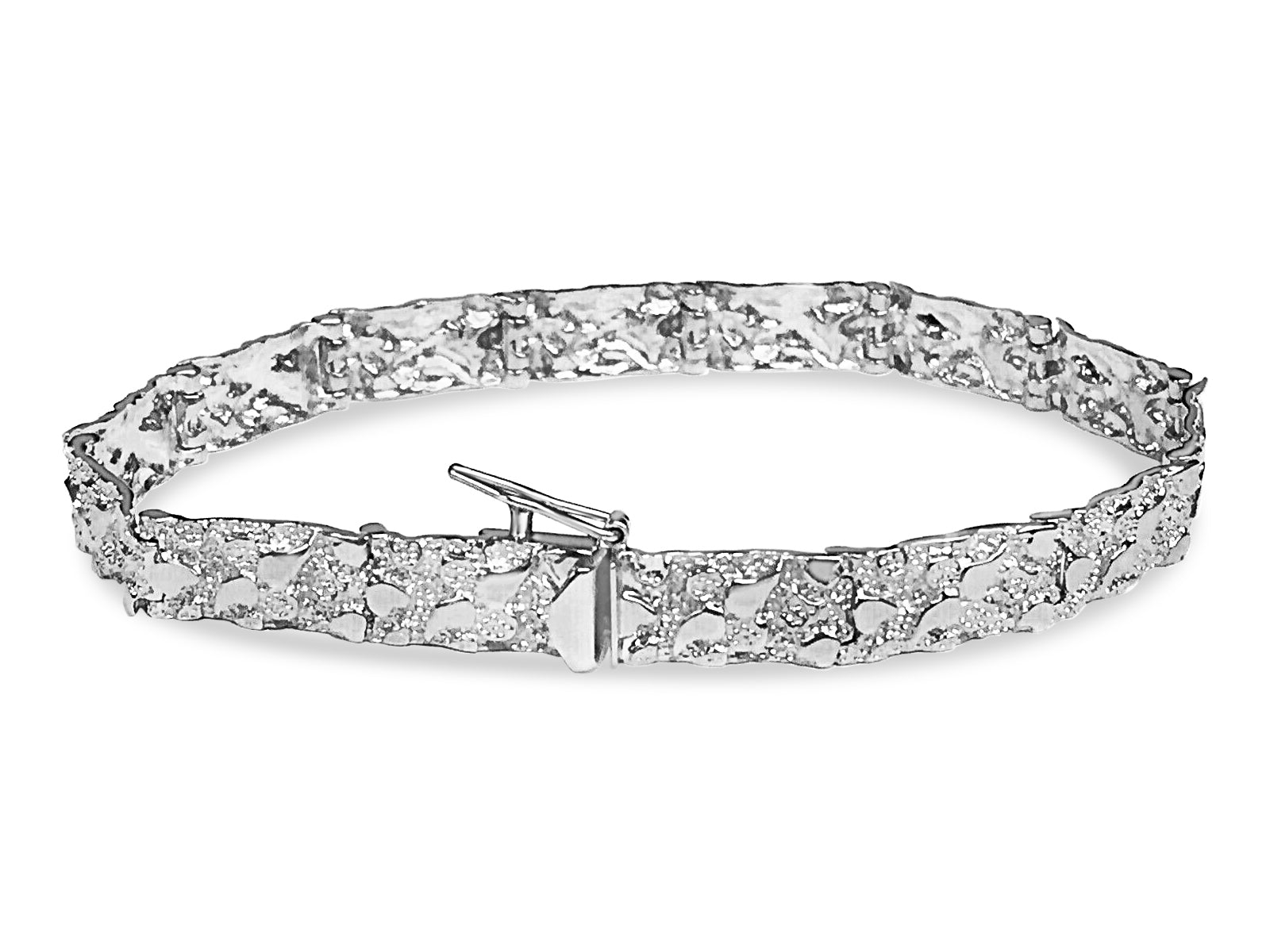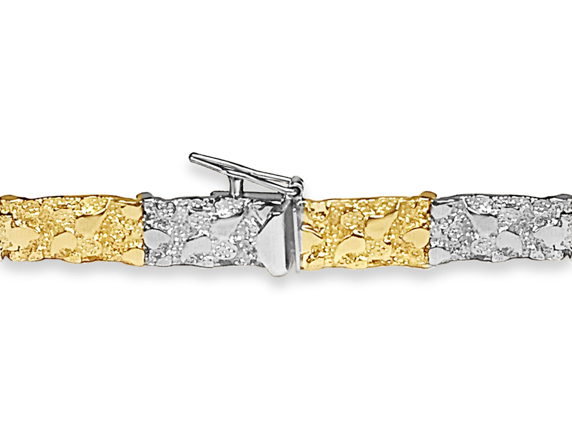 Title: Nugget Solid White/Yellow/Rose Gold Handmade Bracelet, 7mm, 6.5-10 Inch