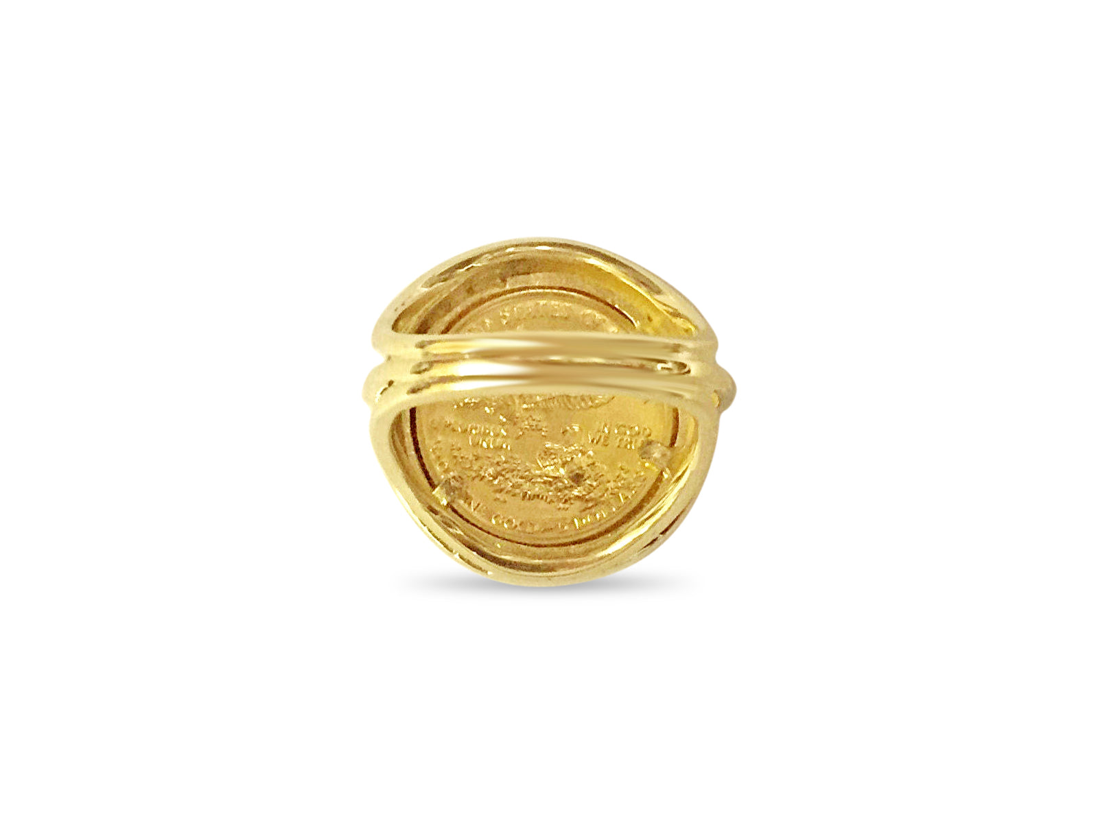 Fancy Solid Gold Handmade Coin Ring , 1/10oz Coin ,