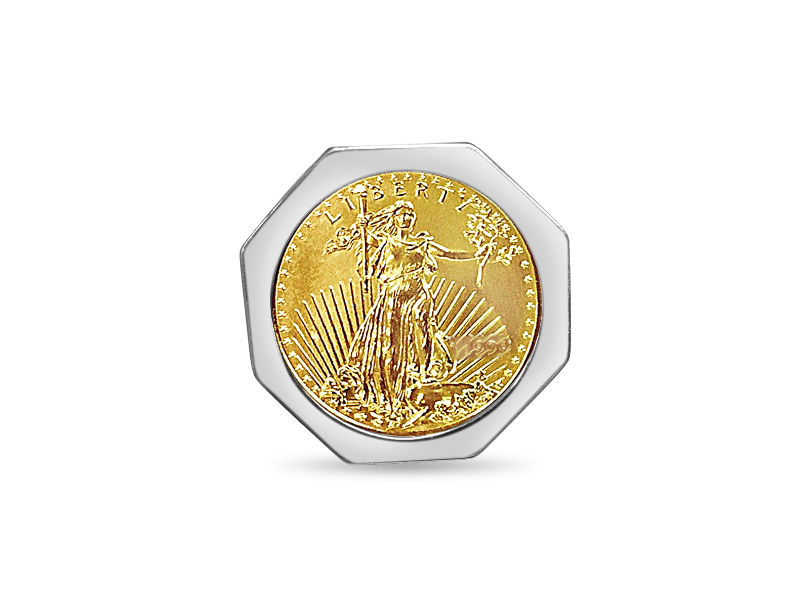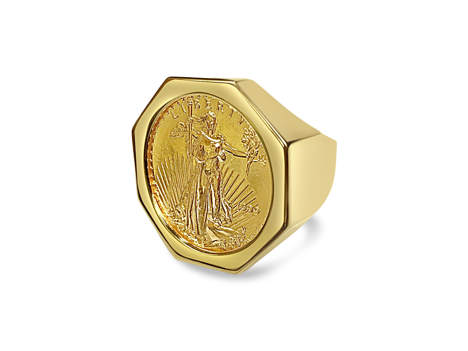 Fancy Solid Gold Handmade Coin Ring , 1/2oz Coin ,