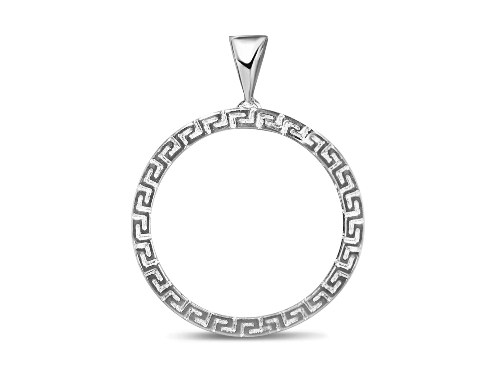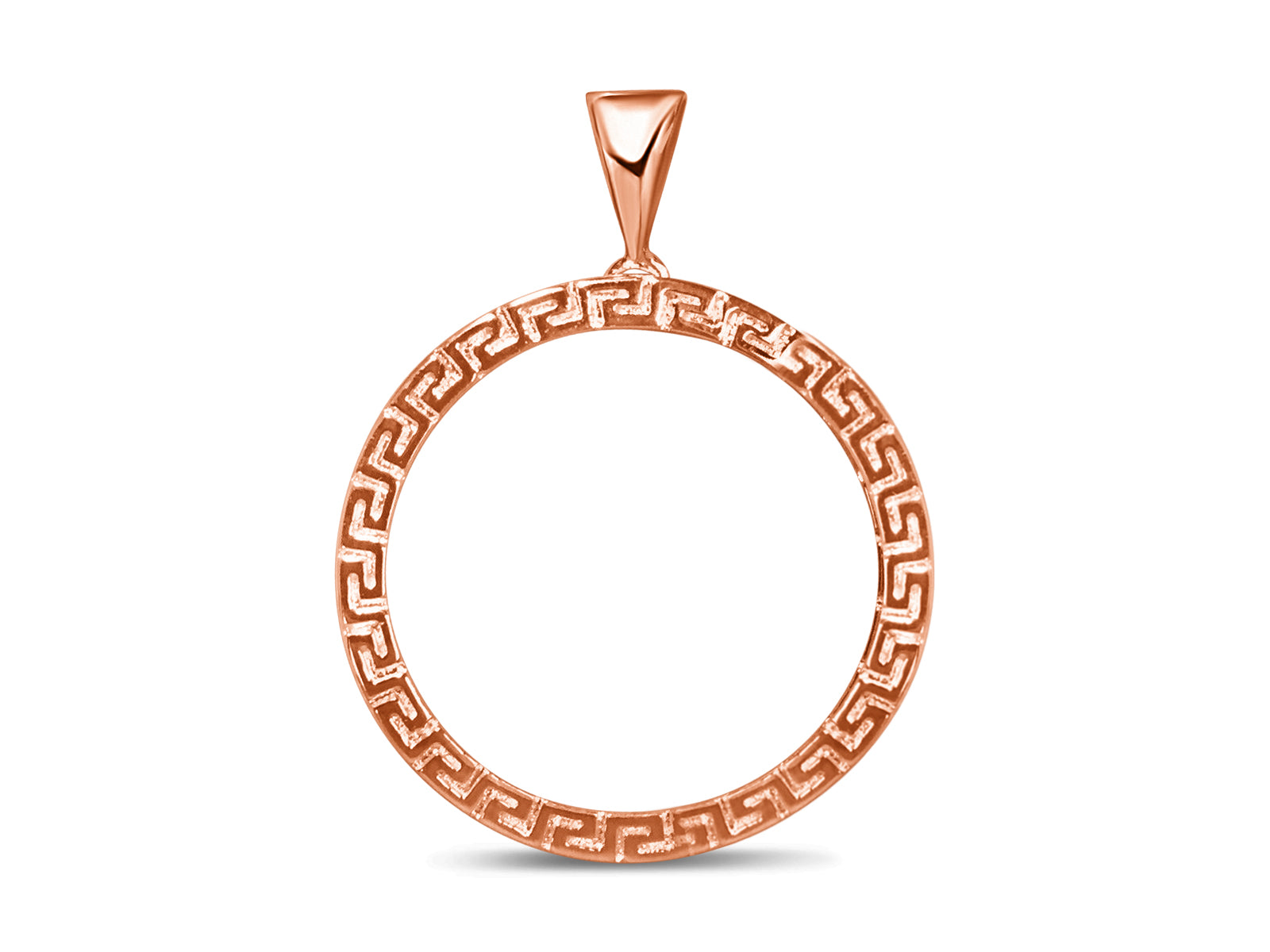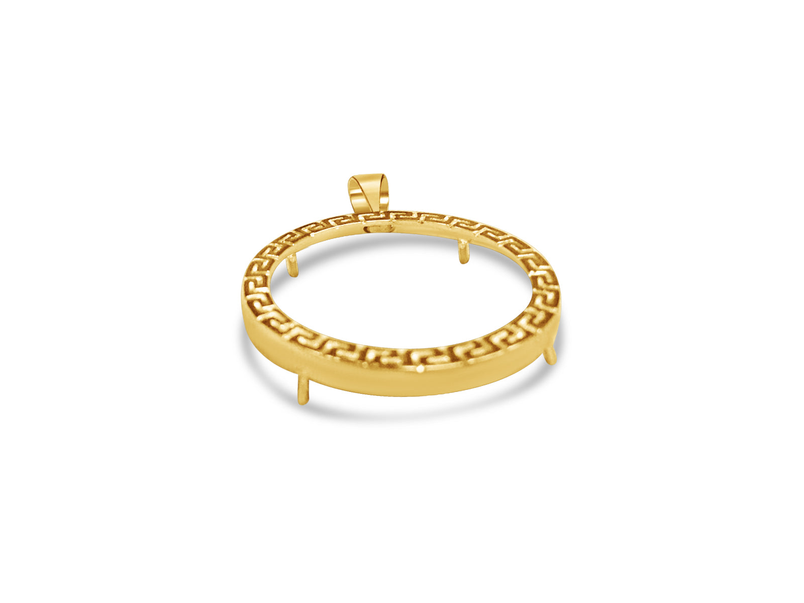 Title: Greek Key Frame Solid White/Yellow/Rose Gold Handmade Coin Pendant, 22mm