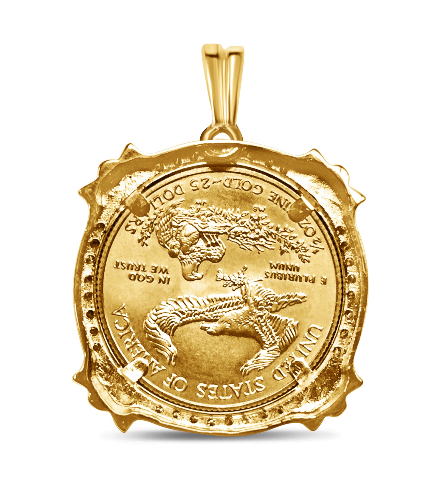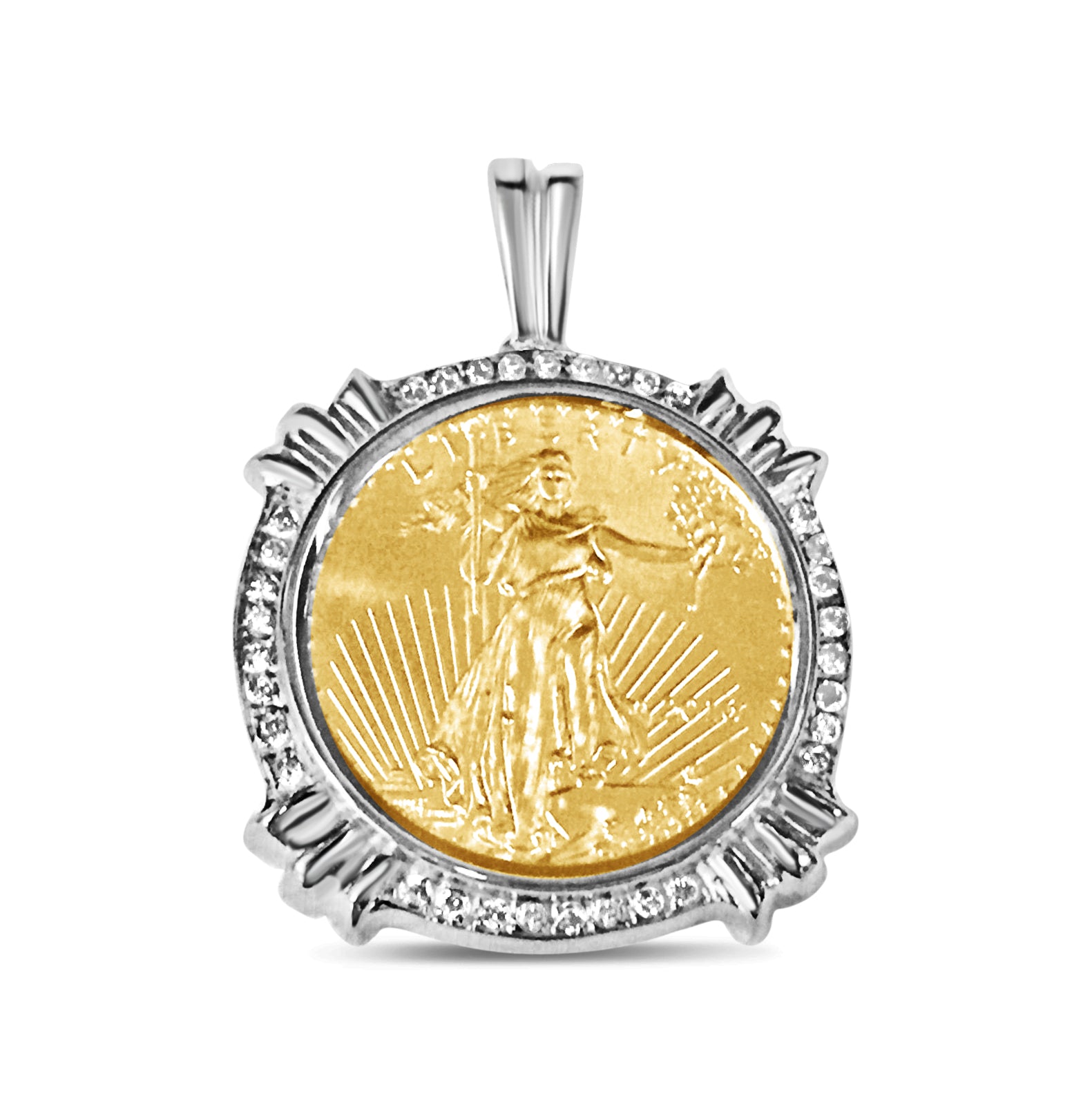 Diamond Fancy Solid Gold Handmade Coin Pendant , 1/2oz Coin ,