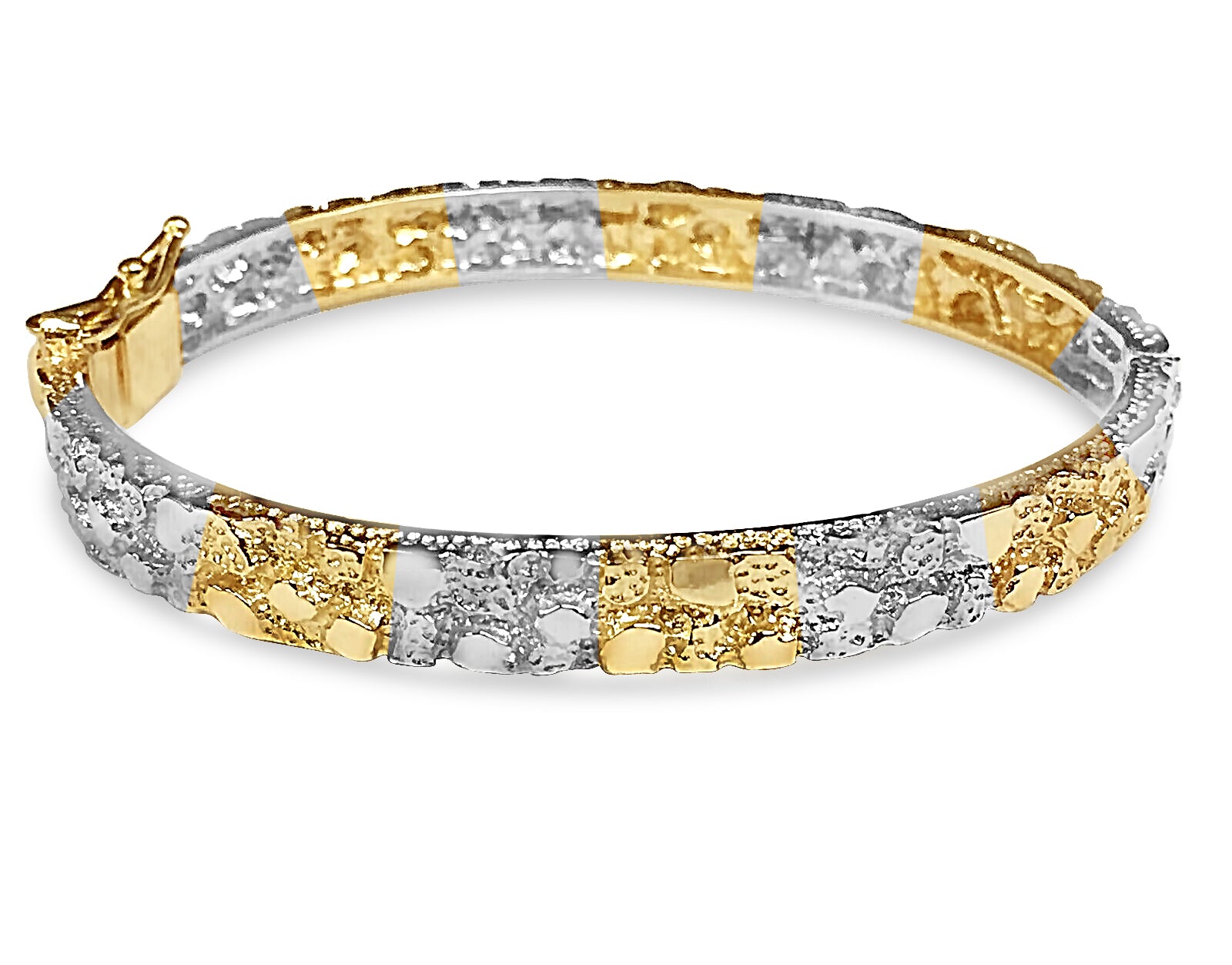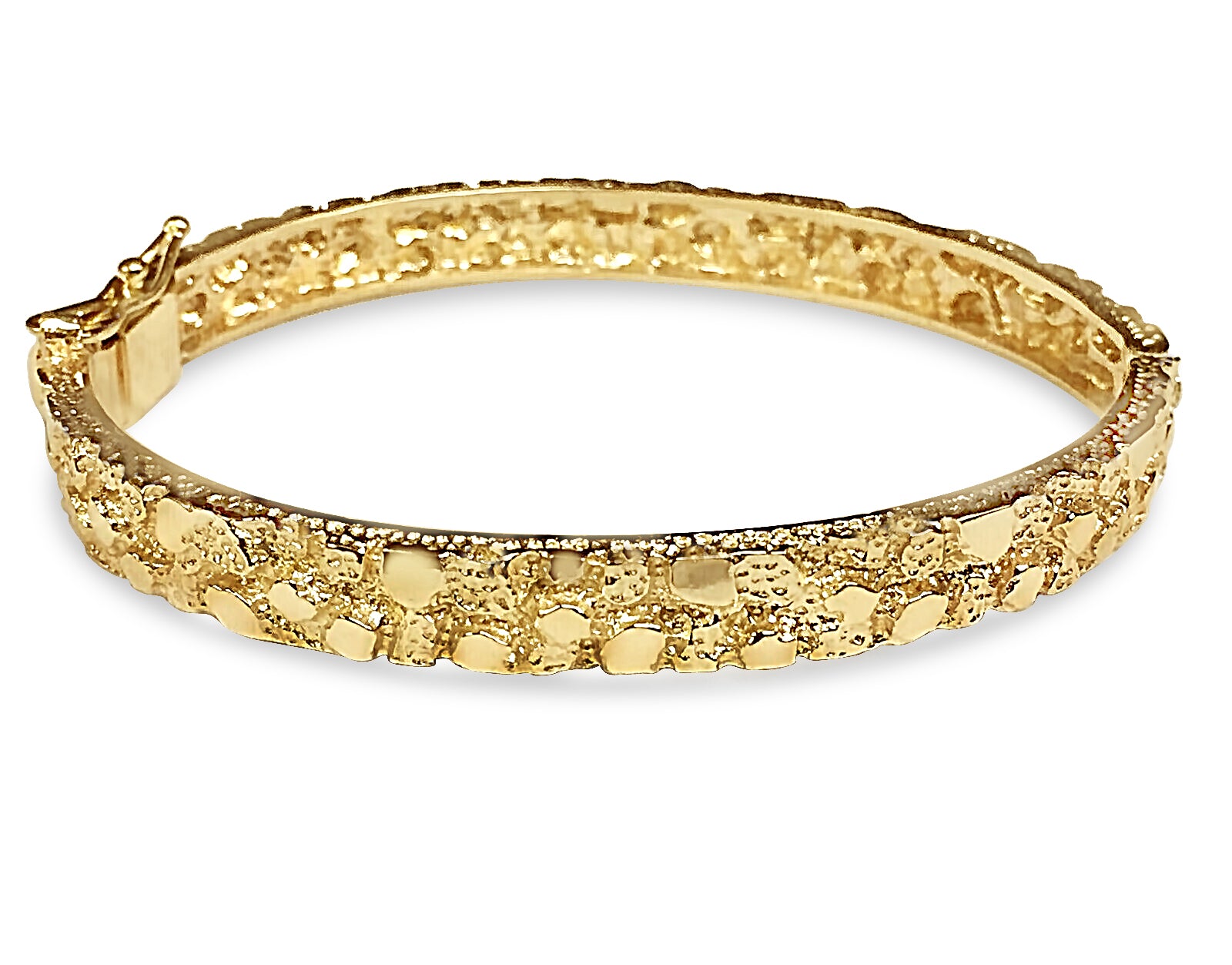 Nugget Bangle Solid Gold Handmade Bracelet , 7mm, 6.5-10 Inch